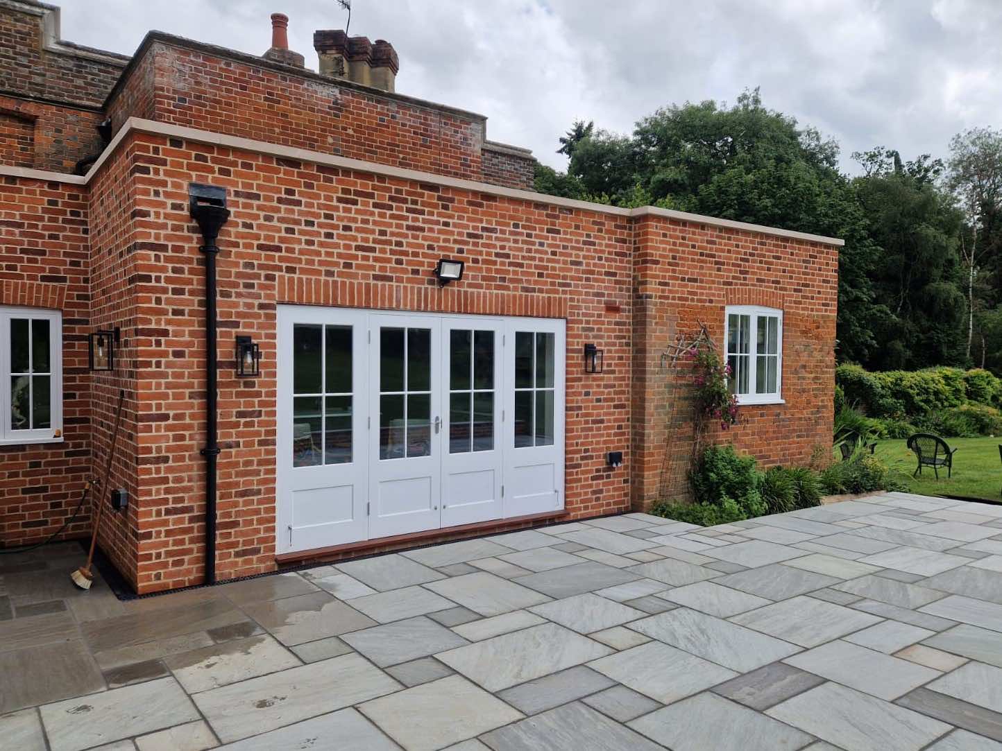 To help our clients visualise the transformation, we created an exterior photo impression prior to finalising the design. This not only brought their vision to life but also streamlined the listed building consent process, ensuring a smooth approval. The finished result is further enhanced by the sleek patio, expertly fitted by our contractors, creating an inviting outdoor entertaining space that embraces the property’s stunning gardens. The superb kitchen, designed and installed by Kitchen Ergonomics, has become the true hub of the home. The roof lantern allows natural light to stream through, brightening the space even on the dullest of days.