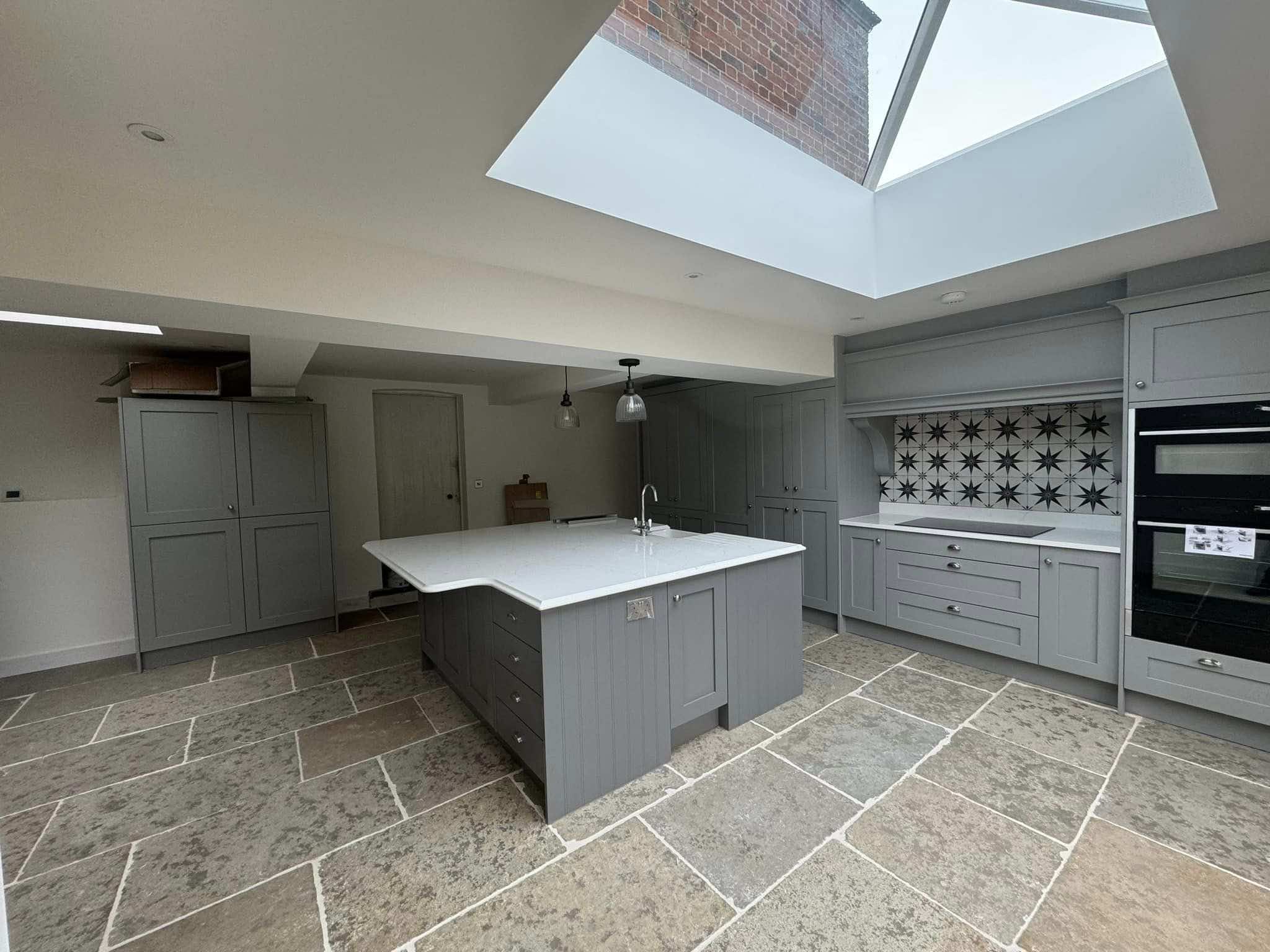 To achieve this, we designed a carefully considered single-storey extension that respected the property’s unique architectural style. The design incorporated traditional materials and detailing to ensure a seamless connection between the old and new. Features such as a roof lantern introduced an abundance of natural light, while stone flooring and underfloor heating provided both practicality and a sympathetic nod to the home’s historic nature.